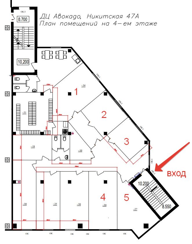 Аренда офисных площадей в на 4-м этаже ТЦ Авакадо на Никитской